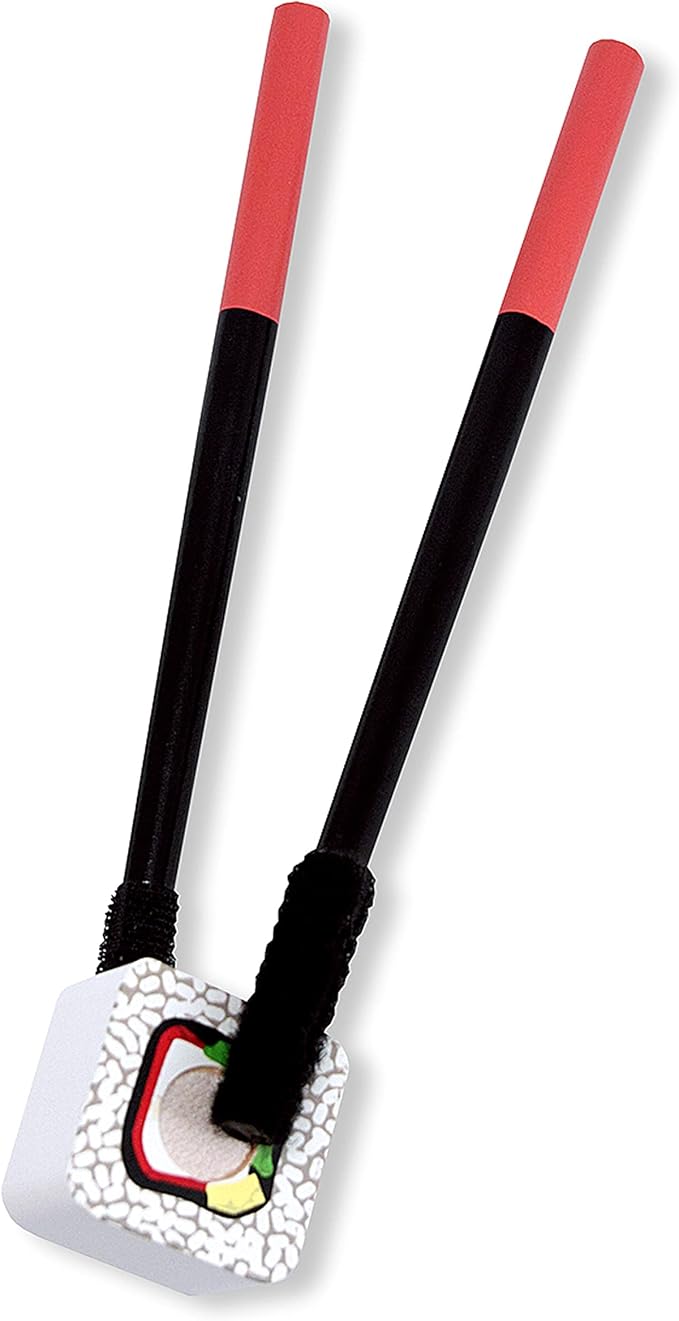- Frustration-free, self-stick chopsticks grip onto play food; self-stick tabs make realistic slicing sounds when "cut" with the wooden knife