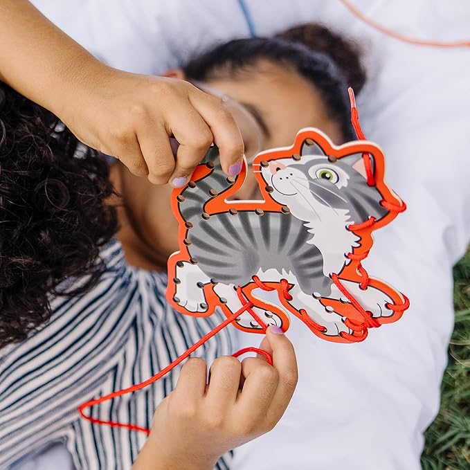 Melissa & Doug Lace and Trace Activity Set: Pets - 5 Wooden Panels and 5 Matching Laces - Lacing Toys For Toddlers, Fine Motor Skills Threading Cards For Preschoolers And Kids Ages 3+