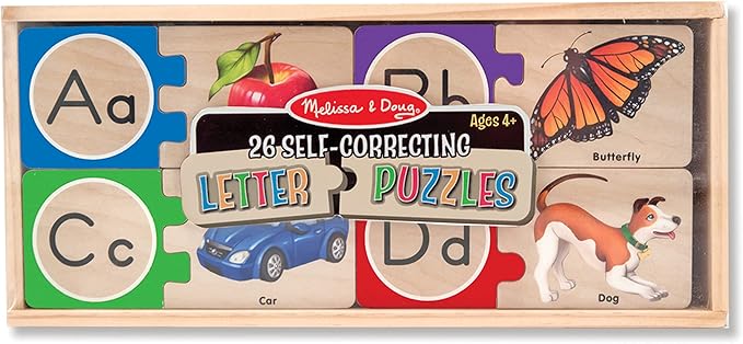 Melissa & Doug Self-Correcting Alphabet Wooden Puzzles With Storage Box (52 pcs)