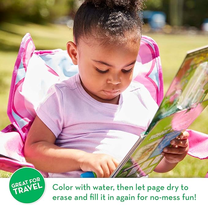 • Reusable pages are white with simple line drawings when dry; reveal colors when wet.
