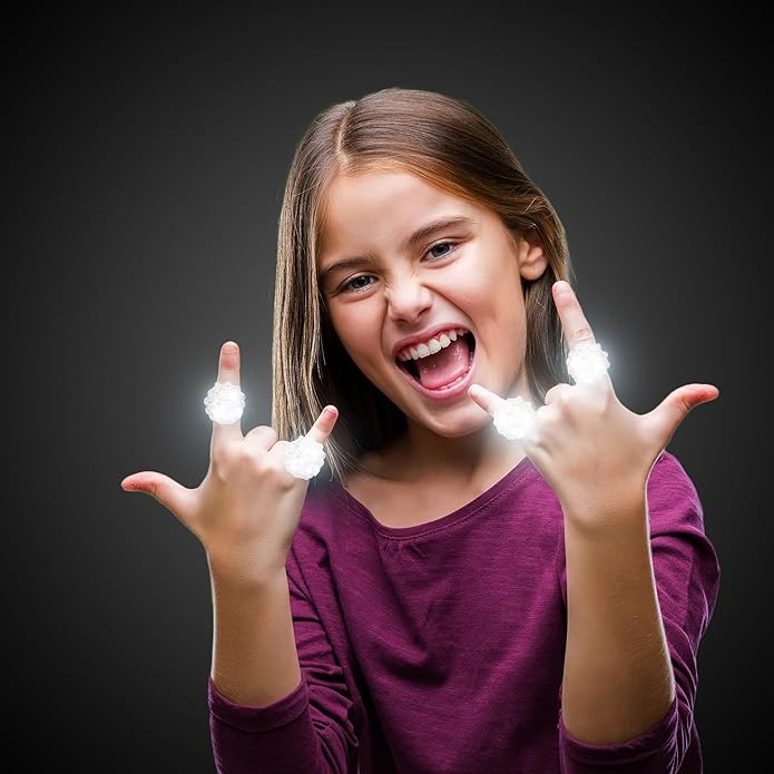 - IT’S PARTY TIME | Our 24-pack of bright, LED Light-up Jelly Bumpy rings take glow rings to the next level. To activate, press on the ring, and it will start flashing. To turn it off, press on the ring again. They make excellent party favors for adults and fit most fingers. Batteries are included and installed inside the rings.