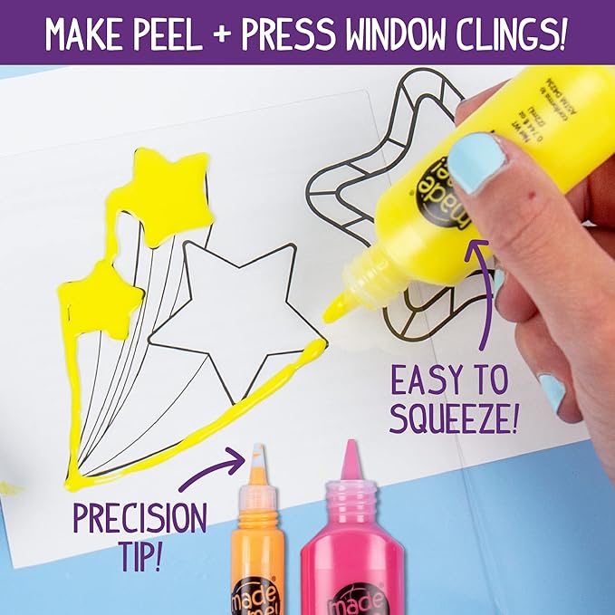 • DESIGN 20 WINDOW ART CREATIONS: Make your windows pop with 20 whimsical window art creations! Color 12 suncatcher shapes and create custom peel & press window clings with vibrant suncatcher paints that are large enough for the littlest hands to hold!