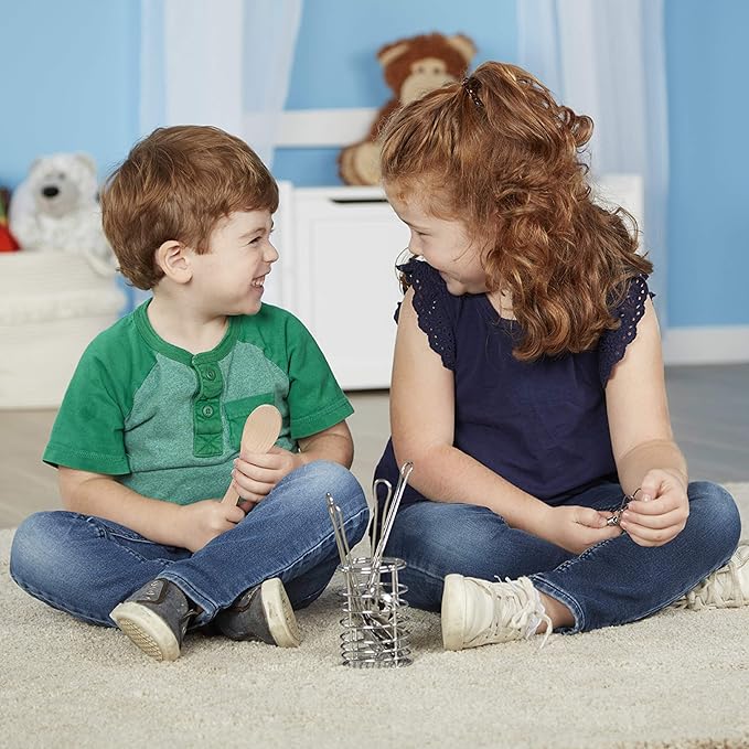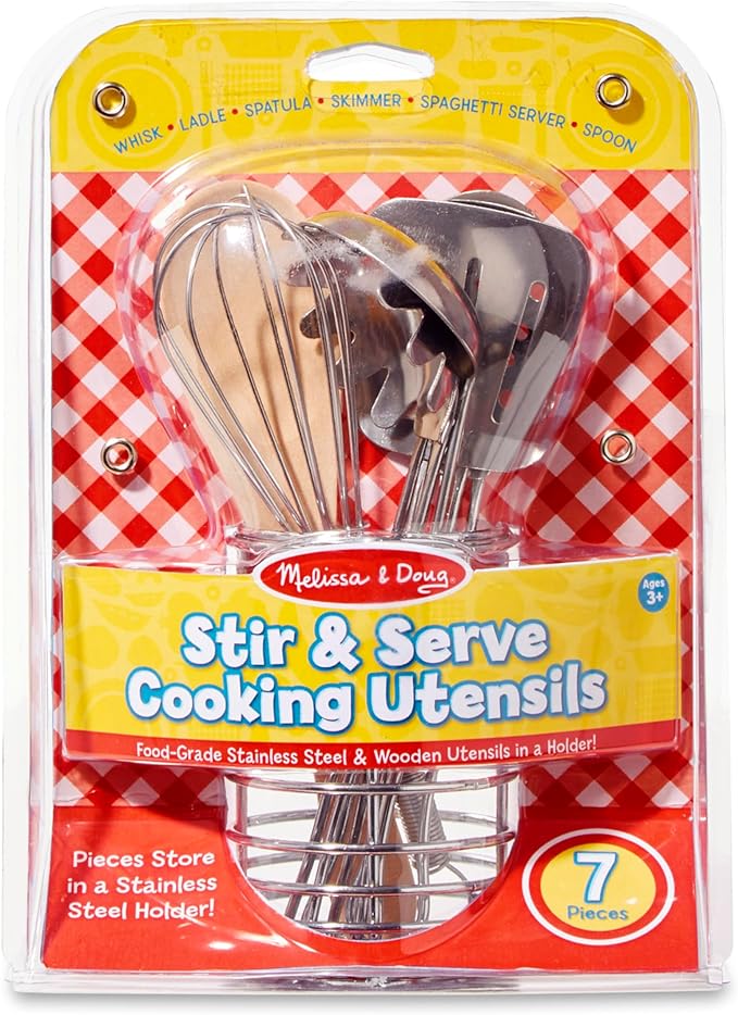 Melissa & Doug Stir and Serve Cooking Utensils (7 pcs) - Stainless Steel and Wood