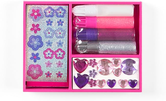 - Includes wooden jewelry box, 26 gem stickers, 38 foil stickers, 3 glitter glues, and white glue