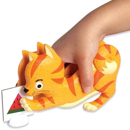 - INCLUDES: 1 Frankie Squeezer, 20 food game pieces, 4 placemat player boards, game spinner, game board (inside box lid), and guide