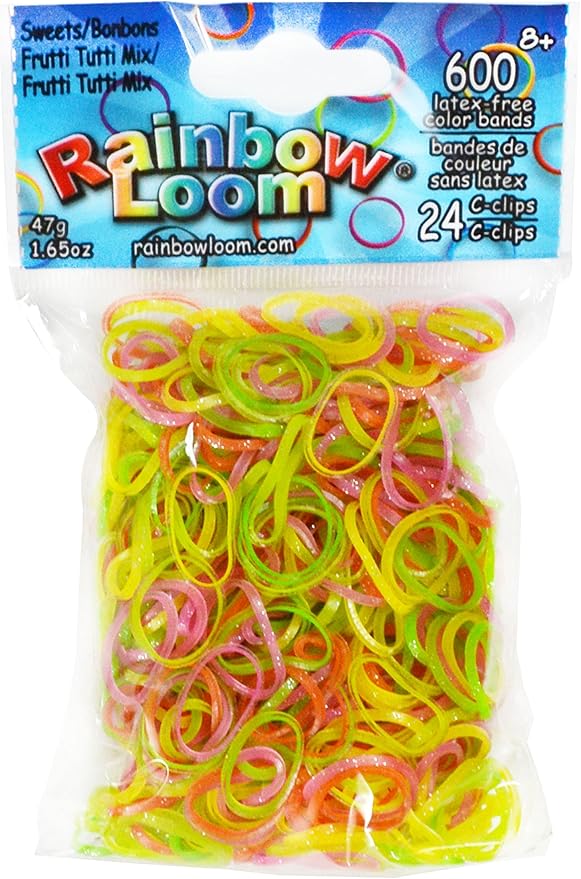 - Fruitti Tutti bands are covered in sparkling silver glitter.
