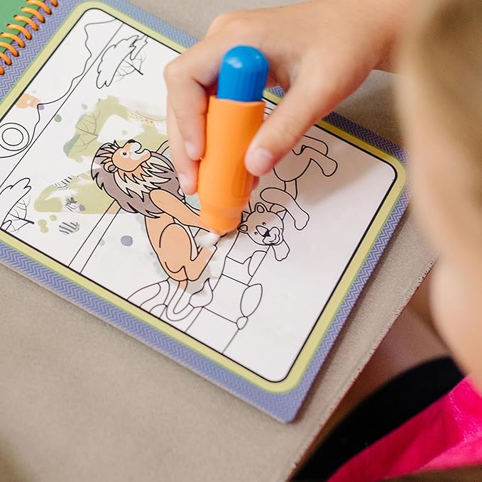 - Activity book of 4 safari-themed coloring boards and refillable water pen