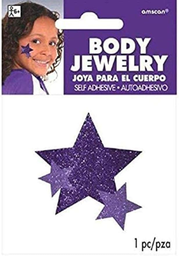 Amscan Stars Assorted Sizes Glitter Self-Adhesive Body Jewelry, 1, Purple