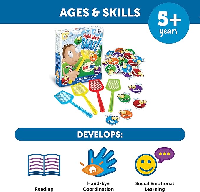 - SWAT A SIGHT WORD GAME: Build reading, spelling and vocabulary skills through playful competition with up to 4 players. The element of speed promotes confidence and fluency in reading.