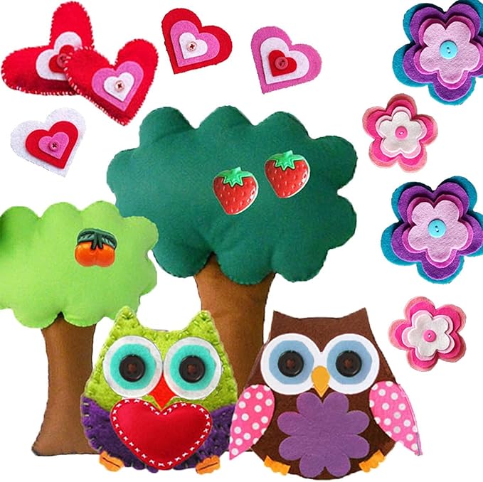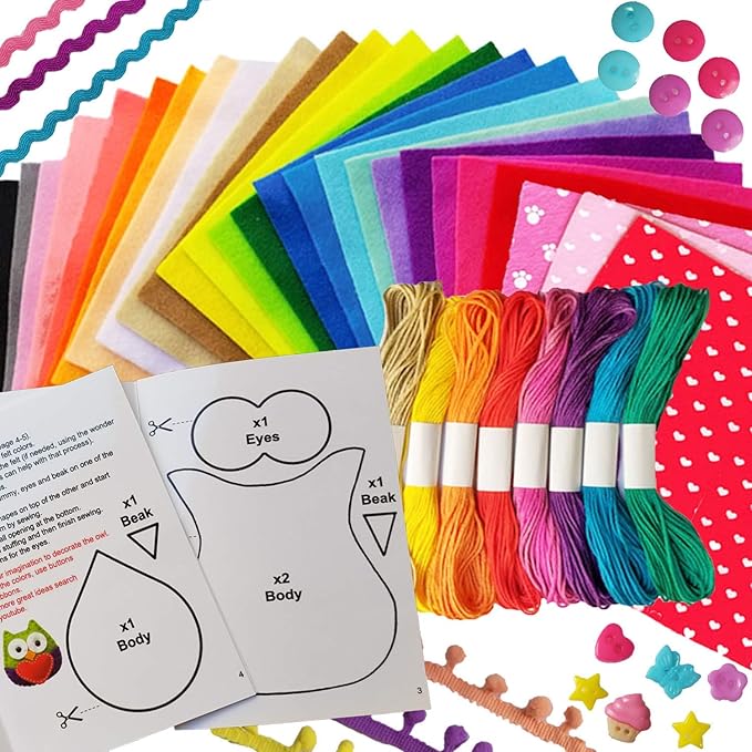 - FULL DIY KIT - This sewing kit for beginners includes an easy-to-follow owl stencil, multiple colorful and patterned fabrics, multicolored threads, scissors, and beautiful decorations.
