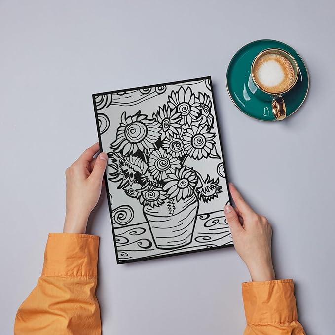 - ARTISTIC SUNFLOWER DESIGN- Our color velvet kit includes an 11.75 in. x 8.25 in. picture of sunflowers in a vase. The floral pattern is fun to color.