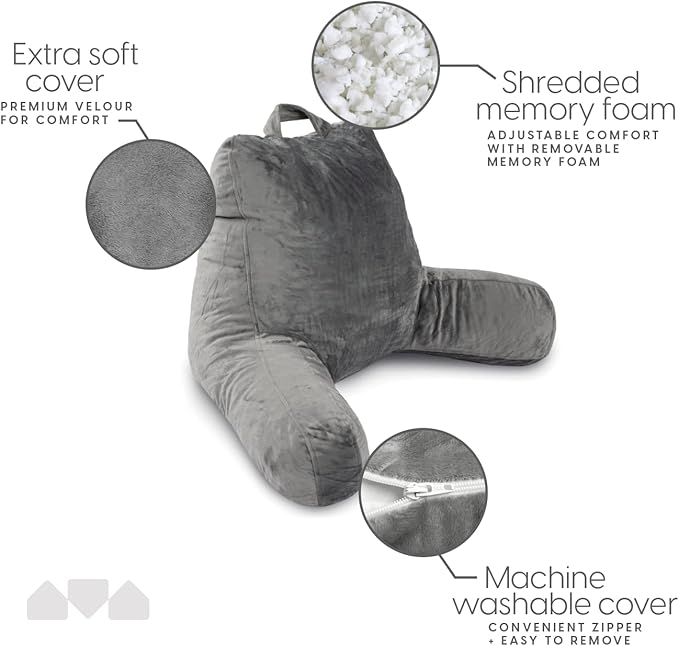 • Great For: Reading in bed, Curling up on the sofa, Sleeping upright for personal comfort, leg arm and back elevator also works for any sort of bed rest.