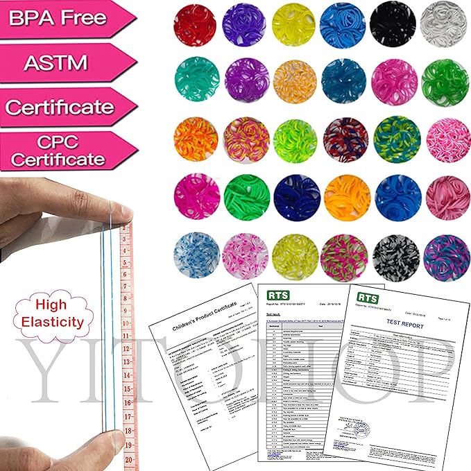 - [ HIGH QUALITY LATEX & NON-TOXIC ] WE GUARANTEE Hundred Percent safe and non-toxic, free from latex, lead and phthalates. The rubber loom band has excellent performance on elasticity, softness and durability, it is optimal choice to make bracelets, arts and crafts gift, Christmas decoration,...ect.