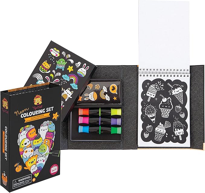 Tiger Tribe: Neon Coloring Set - Glow Friends - Activity Set w/Stickers, Themed Pages & Markers Stored Inside Magnetic Sealed Storage Box, Kid Age 4+