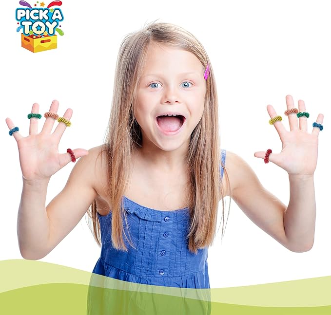 Pick A Toy Stress Relief Fidget Sensory Toys Set –10 Small Quiet Metal Antistress Fingers Rings for Adults, Teens & 5+ Children – Ideal for People with OCD, ADHD, ADD & Autism Sensory Desk Games
