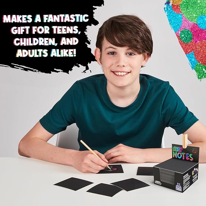- Great gift! The creativity of this rainbow glitter scratch paper and the beautiful packaging makes it a great present for almost anyone, including women, teens, children, artistic types, coworkers and friends.