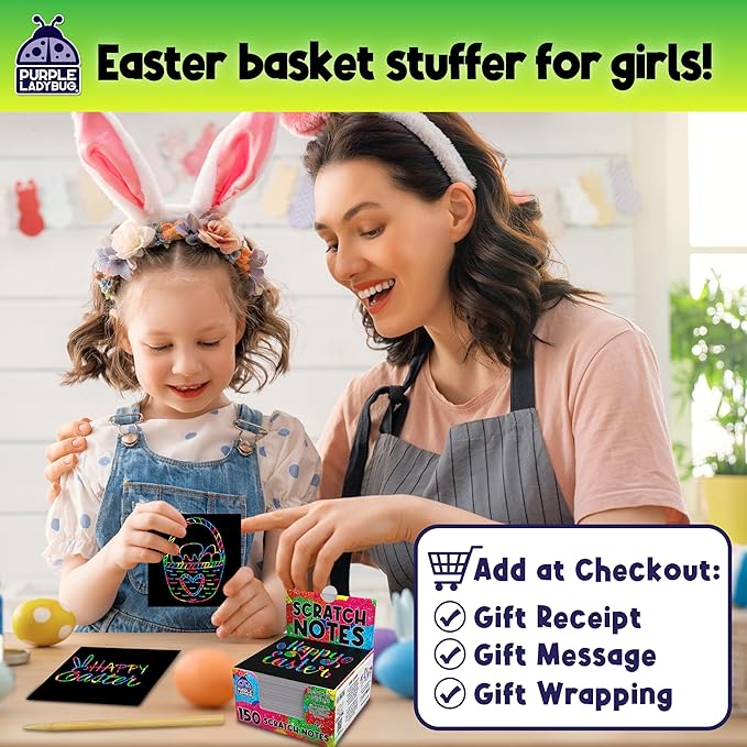 PURPLE LADYBUG Rainbow Holographic Scratch Art Mini Notes - Easter Basket Stuffers for Girls, Teen Girl Gifts, Cool Trendy Stuff, Arts and Crafts for Kids Ages 4-12