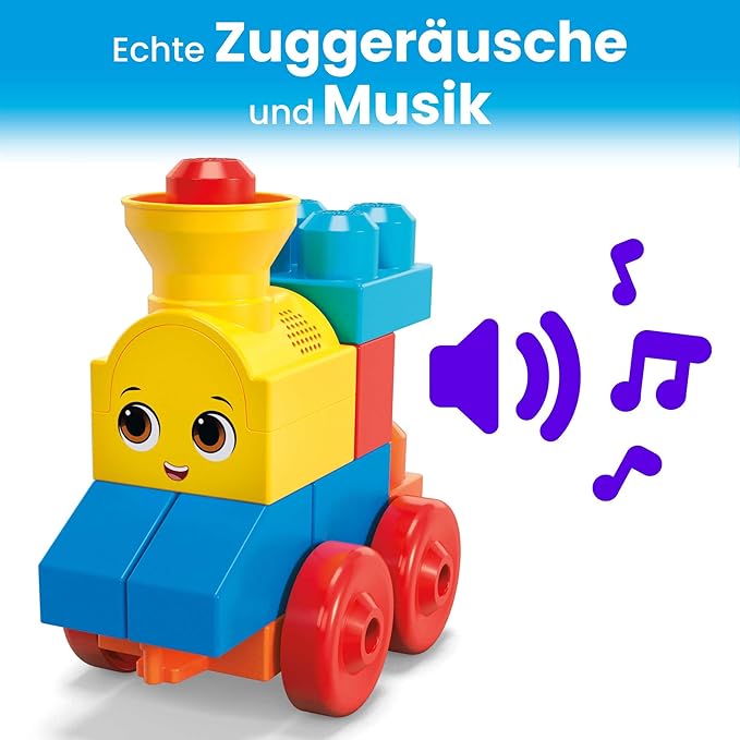MEGA BLOKS First Builders Toddler Building Blocks Toy Set, ABC Musical Train with 50 Pieces, Music and Sounds, Ages 1+ Years