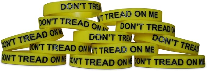 - 12-PIECE DON'T TREAD ON ME WRISTBANDS make ideal giveaways, carnival prizes or party favors in gift goody bags as stuffers for kids. Each measures 8” around the wrist, made of strong stretchy safe silicone.