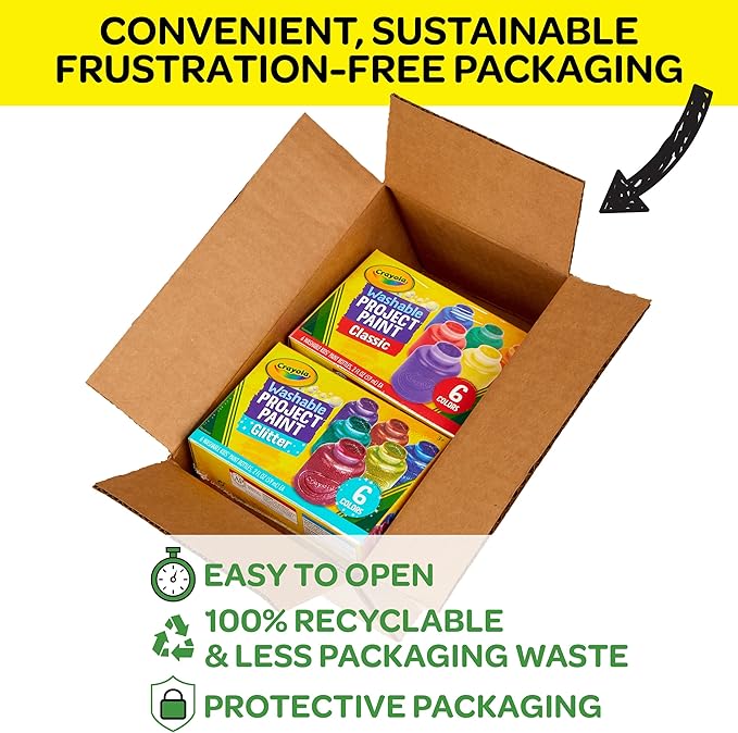 - KIDS PAINT SET: Features Crayola Washable Paint for kids in 6 Classic Colors and 6 Glitter Paint Colors.