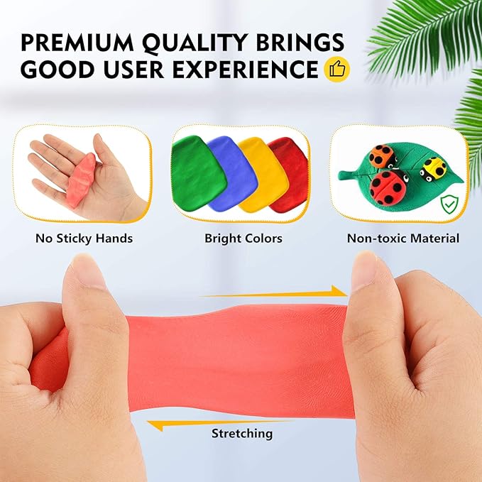- 【Non-toxic Material】Conforms to ASTM D-4236. Made from non-toxic and eco-friendly soft polymer molding clay with bright color, non-sticky to your hands, super stretchy.