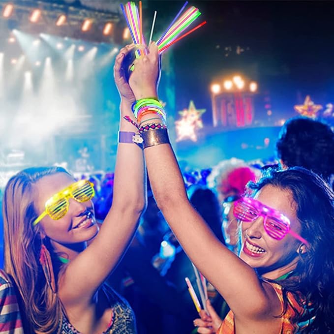 - 125 Pack Party Favor Neon Bulk Toys: Assorted shapes and eye-catching colors, perfect size for both adults and children. 100 glow sticks, 25 led light up glasses. 125 pieces led toy is enough for you to share with your friends and partyers