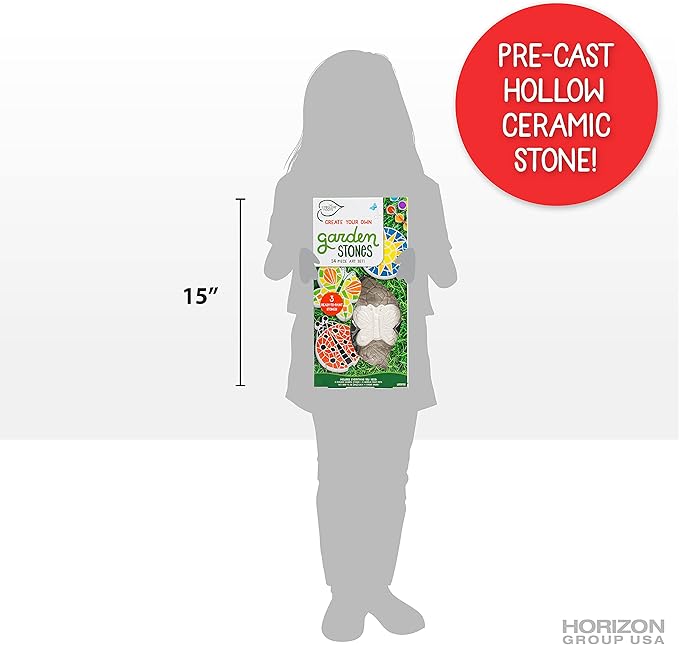 - SET INCLUDES: 3 Ceramic Garden Stones (4.25in. x .5 in. x 4.25 in. each), 1 Acrylic Paint Strip (White, Black, Blue, Pink, Purple, 3mL each), 1 Acrylic Paint Strip (Red, Blue, Green, Yellow, Orange, 3mL each), 1 Paintbrush, Easy-To-Follow Instructions