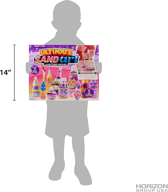 Made By Me Ultimate Sand Art Kit, Includes 13 Colors of Sand, 1 Glow in The Dark Sand, 8 Sand Bottles, 3 Pack of Glitter, Sticker Sheet & More, Arts & Crafts, Arts and Crafts, for Ages 6+