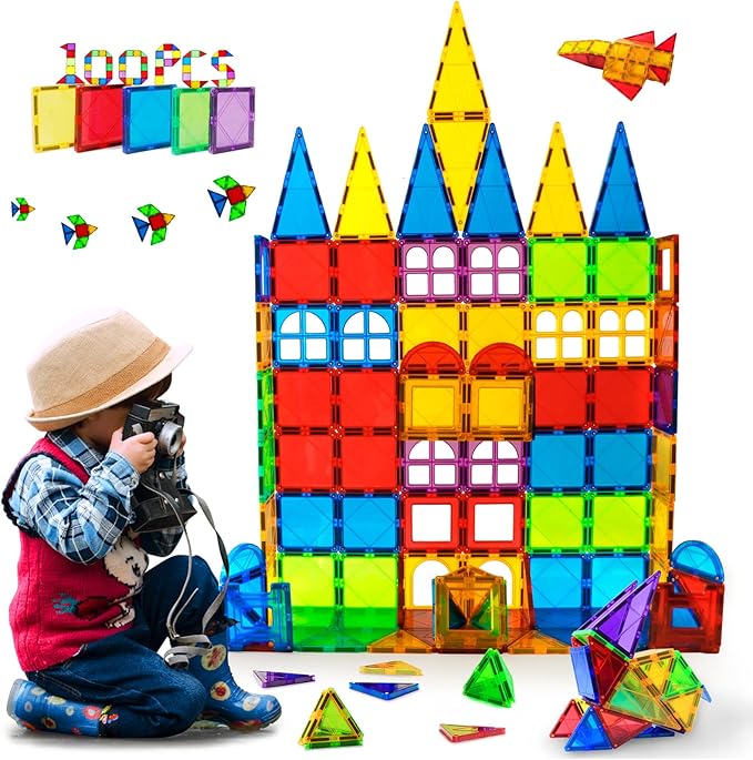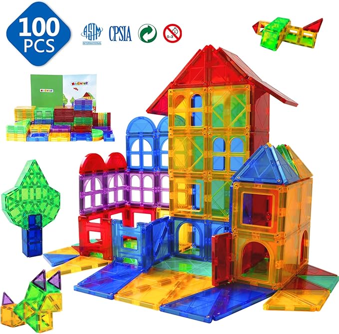 MAGBLOCK Magnet Toys Kids Magnetic Building Tiles 100 Pcs 3D Magnetic Blocks Preschool Building Sets Educational Toys for Toddlers Boys and Girls.