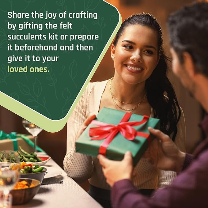 - DIFFERENT WAYS TO DESIGN—Faux moss and pebbles enhance the display, and colorful felt succulents add a splash of color!