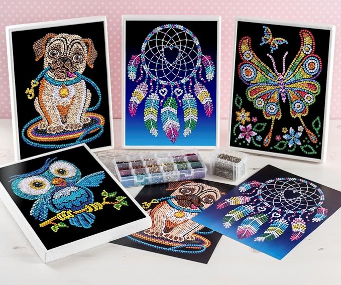 - CREATE YOUR OWN PICTURE - Includes an easy to follow full colored instruction picture. Just place the colored design picture on the frame and attach the glittering colorful sequins using the pins provided to complete a vibrant picture.