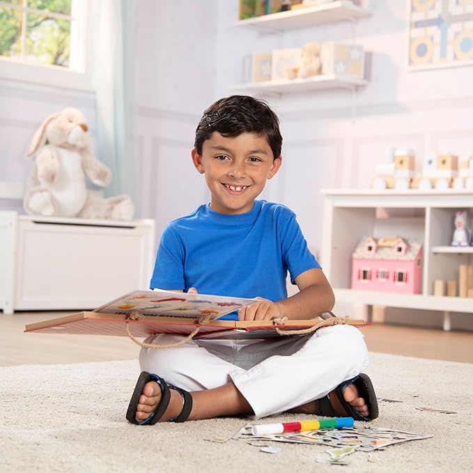 - Includes 41 magnets, 5 dry-erase markers with an eraser, built-in magnetic dry erase board, 13-page spiral-bound dry-erase activity book