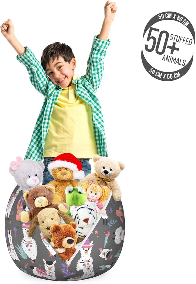 - Small size - You can stock over 50 plush toys in bean bag. Measurements: 22" W X 15" H when full.