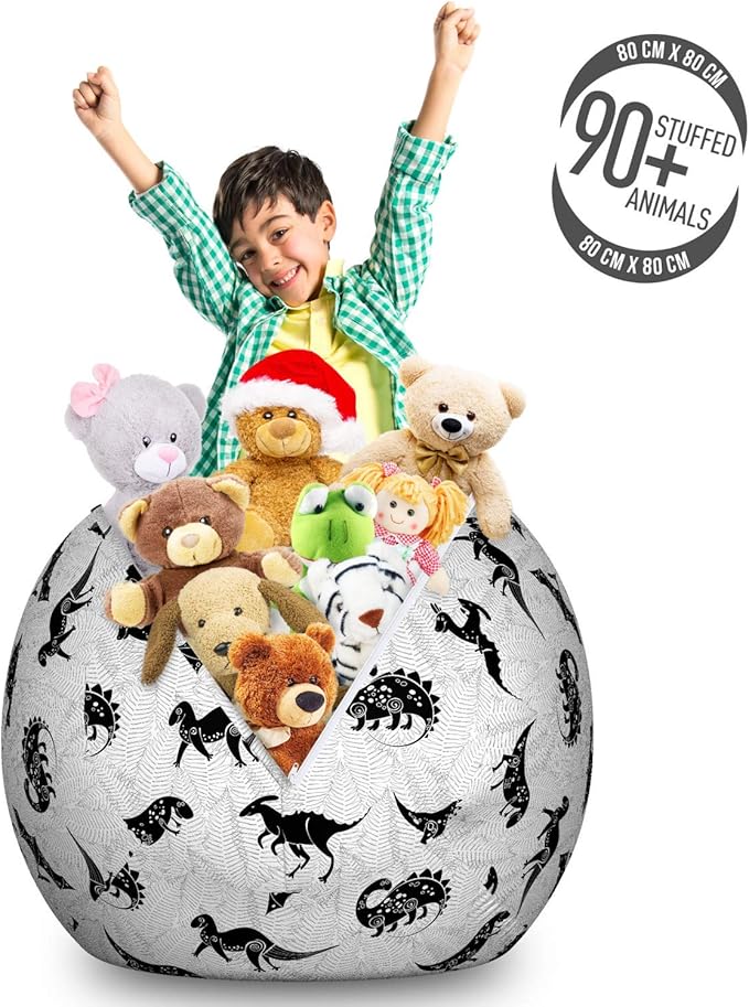 - Large size - You can stock over 90 plush toys in bean bag. Measurements: 30" W X 23" H when full.