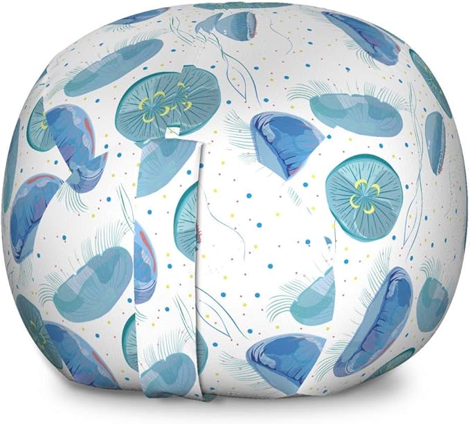 Lunarable Nautical Storage Toy Bag Chair, Jellyfish Pattern with Spotted Background Ocean Creatures Ornamental Sea Life, Stuffed Animal Organizer Washable Bag, Large Size, Pale Blue
