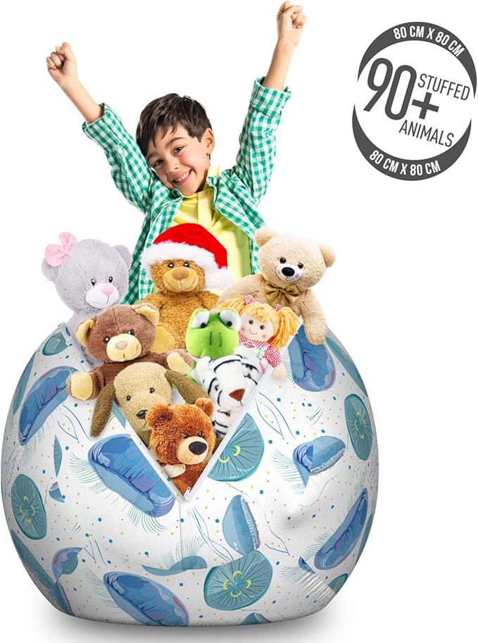 - Large size - You can stock over 90 plush toys in bean bag. Measurements: 30" W X 23" H when full.