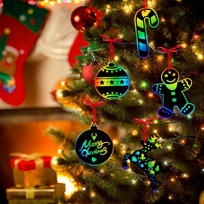 ORIENTAL CHERRY Christmas Scratch Crafts Arts, 48 DIY Rainbow Scratch Art Bulk Cards, Rainbow Scratch Paper Supplies Toys for 3-12Years Old Kids Favord Gift for Christmas Party Games Projects Kits