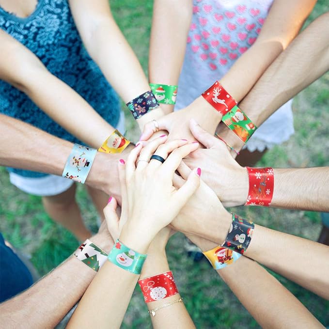 - ▲CHRISTMAS THEME---The Christmas Slap Bands pattern of snowflake, snowman, Santa Claus, Christmas Tree, elk and so on, most of the classic Christmas elements, can help to create a festive atmosphere to your party