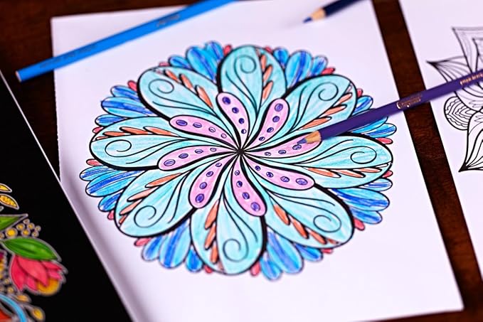 - CRAYOLA MANDALA ADULT COLORING BOOK: Features 40 Mandala Coloring Pages with beautiful geometric designs.