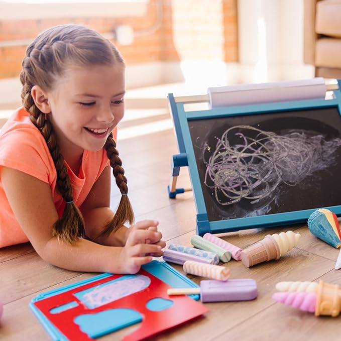 Melissa & Doug Ice Cream Shop Multi-Colored Chalk and Holders Play Set - 33 Pieces, Great Gift for Girls and Boys Kids Chalk Set