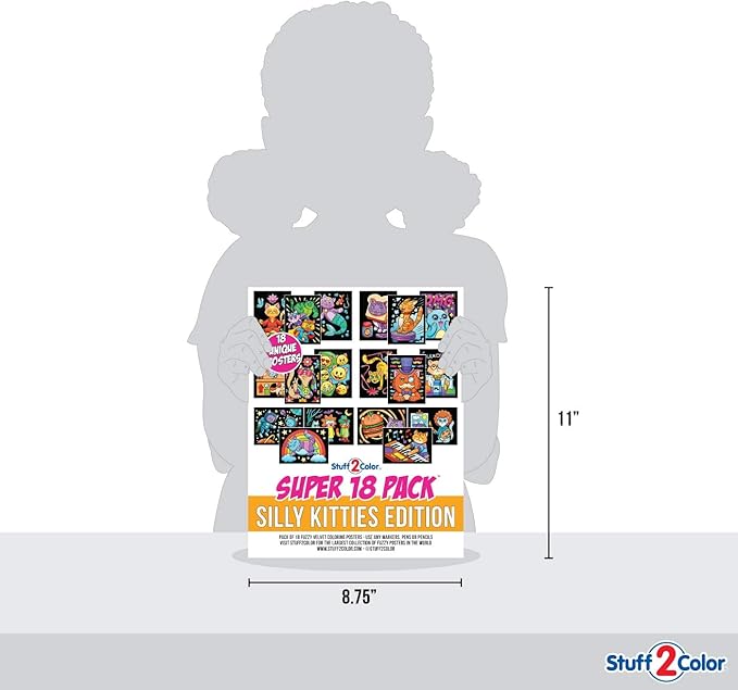 Super Pack of 18 Fuzzy Coloring Posters (Silly Kitties Edition) - Arts & Crafts for Kids, Toddlers, Girls, Boys & Adults - Great for Family Fun Activities or Coloring with Friends (1 Pack)