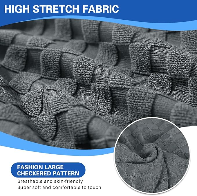 - UNIQUE DESIGN - Crafted from newest jacquard knitted fabric embellished with three-dimensional large checks, the cover for recliner chair looks upscale and stylish, provides decorative purpose to your recliner chair and living room! Features a side pocket design where you can put your remote, magazines and other small items for easy access. And our fabric adopts advanced active staining technique, so the color is more vivid, no fading, no pilling, wrinkle free, healthy and skin-friendly