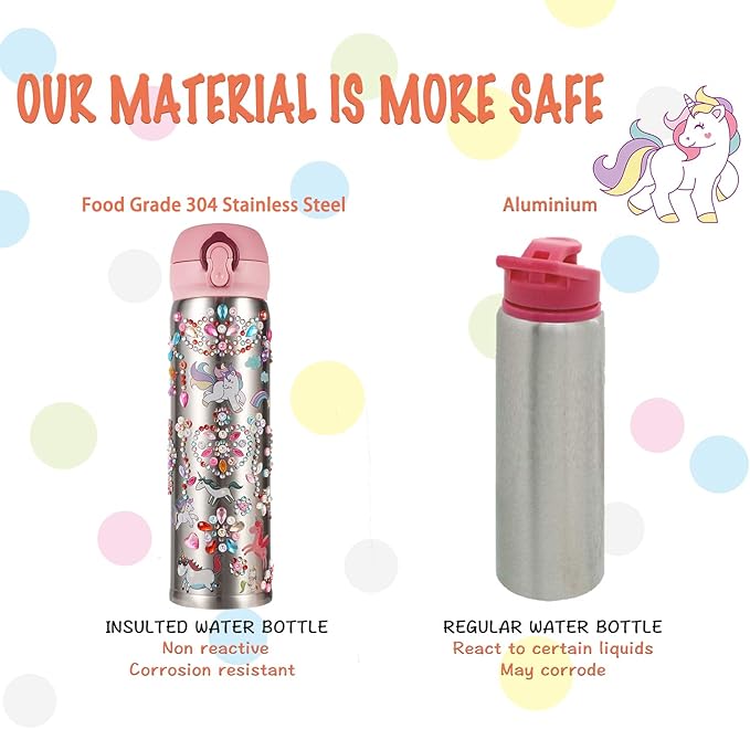 - 【UNIQUE WATER BOTTLE】Foster Creativity with our water bottle craft kit,simply peel the gems from the sticker, apply them to make a unique water bottle, easy & fun for kids at a young age as well