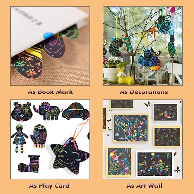 - 【Safe & Non-Toxic Materials】Our scratch papers are made of premium, non-toxic materials that ensure a safe and enjoyable experience. The wooden styluses are crafted from natural wood, free from any odd flavors or toxic powders. Children and adults can create amazing artworks without worrying about harmful substances.This product is intended for ages 3 years and older.