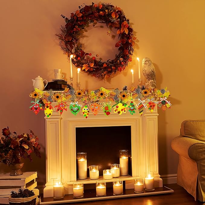 • 48 Sets Fall Craft Kits DIY Hanging Fall Leaf Ornaments Art Sets, including 48 Pcs Assorted Fall Leaf Foam Cutouts, 30 Pcs 6 Colors Plain Pipe Cleaners Chenille Stems, 30 Pcs 6 Colors Metallic Chenille Stems, 75 Pcs Plain Craft Pom Poms, 75 Pcs Glitter Craft Pom Poms, 1 Sheet Colorful Rhinestone Gem Stickers, 100 Pcs Wiggle Googly Eyes, 48 Pcs Fall Ribbons for tying bows, 48 Pcs fall Satin Ribbons for hanging, 1 Black Marker and 9 sheets adhesive dots.