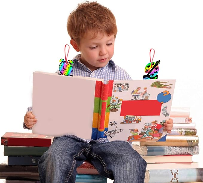 - Beautiful Decorations: You can put the scratch bookmarks in books or hang anywhere you want for beautiful decorations. You can hang them on a string, blackboard, window, ceiling, Christmas tree, indoor plant’s branch, wall, doorknob, table, teacher’s desk, etc. It helps creating a happy back to school atmosphere for teachers and students.
