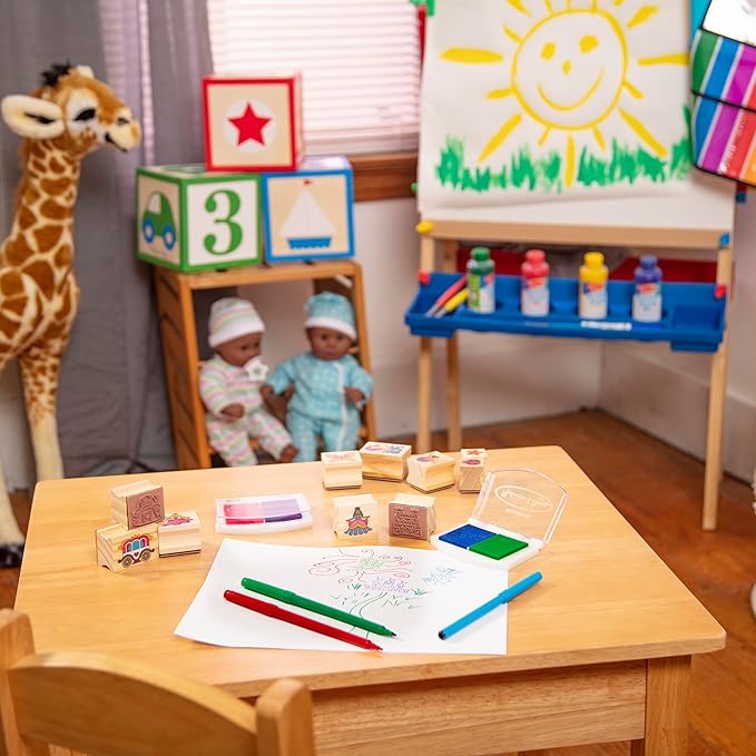 - 38-piece deluxe fairy tale-themed wooden stamp and coloring set from Melissa & Doug