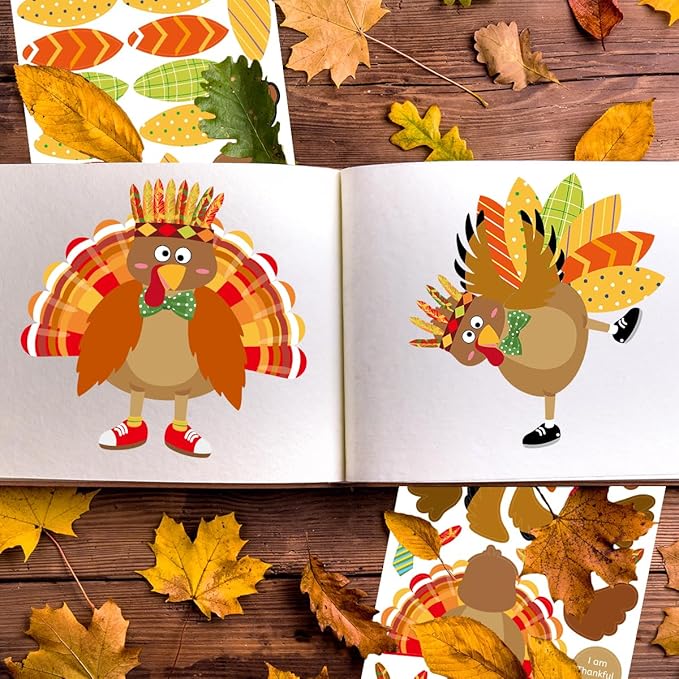 - Make-Your-Own Turkey Stickers: Create your own stickers. Using your imagination to create your turkey with these cute stickers