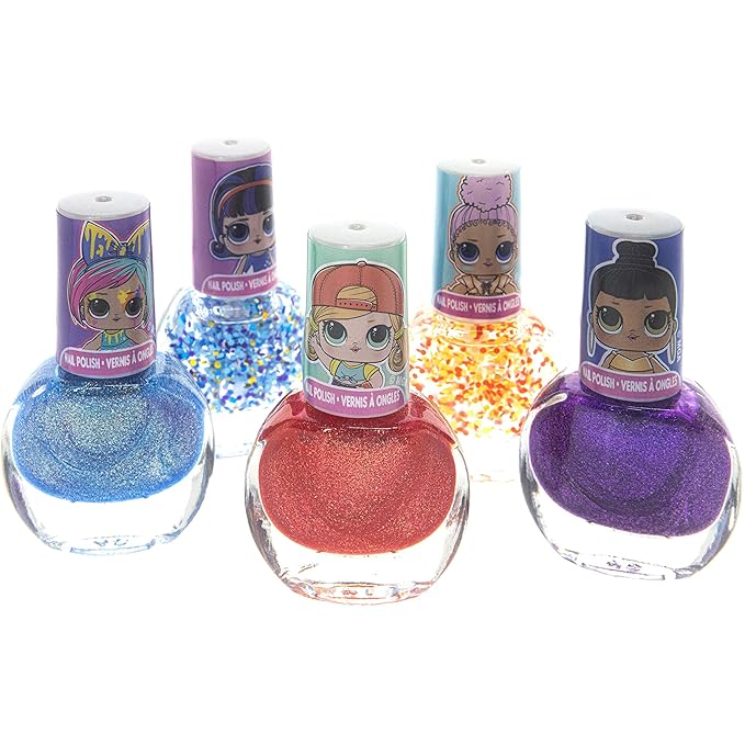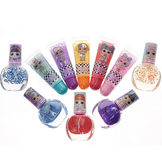 LOL Surprise Townley Girl 11 Pcs Sparkly Cosmetic Makeup Set for Kids Includes 5 Lip Gloss, 5 Nail Polish & Nail Stickers for Girls Tweens, Ages 3+ Perfect for Parties, Sleepovers and Makeovers