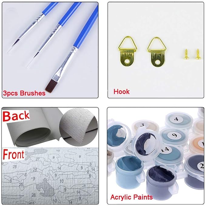 - * You Can Get - Painting by numbers kit include 1 pc pre-printed textured art canvas (16 x 20 inch/40 x 50 cm), 1 set acrylic paints,3 nylon brushes of different sizes,come with exquisite gift package